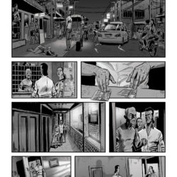 Así que me doy un atracón de cómics y nos ponemos manos a la obra. Este punto, que a priori pudiera parecer accesorio, es esencial para el desarrollo del proyecto: yo no soy un lector habitual de cómics, pero tengo que escribir un guion con garra para atrapar al lector, y eso sin incorporar superhéroes, zombies, infectados ni otros elementos de ciencia ficción propiamente dicha, sino más bien mediante una intriga de género noir, con una apertura (que eludo revelar aquí) muy difícil de trasegar y con un final de tragedia clásica, según acordamos. Ahí es nada.
