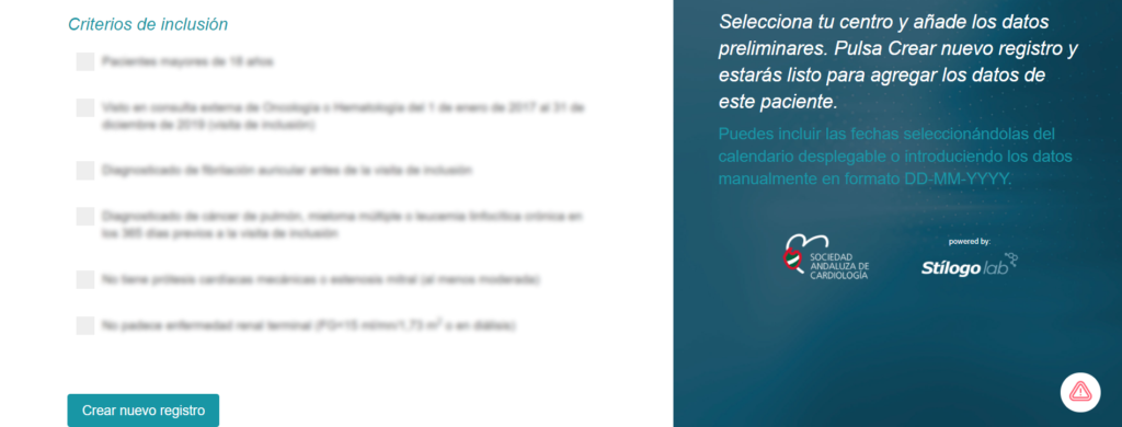 ‘CANAC FA’, registro multicéntrico CÁNcer ACtivo y Fibrilación Auricular, cuaderno de recogida de datos clínicos desarrollado para la Sociedad Andaluza de Cardiología