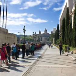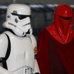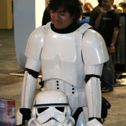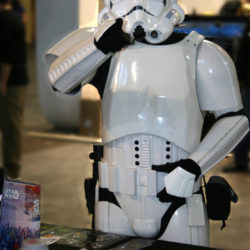 La guardia imperial de Darth Vader ha compartido flashes con los seguidores de la saga, y luego podías encontrarte a sus integrantes en un restaurante cercano al Palau, con los cascos en la mesa. El cine es el cine, y a veces la magia se revela. R2-D2 (un pelín decrépito, que todo hay que decirlo) aparecía de una pieza en un stand, pero luego lo vimos atascado (el pavimento del Palau tiene una orografía peculiar y R2-D2, aun siendo chiquito, debe pesar lo suyo) y descabezado, como un Sleepy Hollow cibernético. Entonces se superaba, pues intervenía simultáneamente por megafonía (decapitado y todo), con lo cual revelaba su verdadera condición ubicua y demostraba que es una deidad del celuloide.