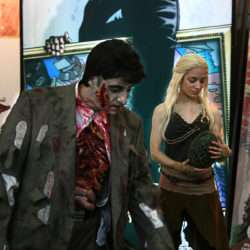 Nos impresiona vivamente la exposición Malefic Time, con impactantes óleos y acrílicos sobre lienzo y papel artesano de Luis Royo y Rómulo Royo, presentes además en el stand de Norma Editorial el sábado 6 de mayo, junto con otros rostros imprescindibles del sello. Hasta el mítico Milo Manara puede firmar alguno de los volúmenes de Los Borgia.