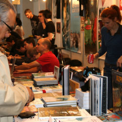 Pasamos por Babylon Cómics, Aleta Ediciones, Dolmen Editorial, Ediciones B, Diábolo, Sins Entido, Dib-buks, Random House Mondadori… En DC Cómics están Scott Snyder y Greg Capullo. En Astiberri firman Alfonso Zapico, Lola Lorente, Munuera y Canales (José Luis Munuera por duplicado: Fraternity —con guión de Luis Díaz Canales— y Oficio: Dibujante). De Paco Roca se pueden ojear originales de El Invierno del Dibujante, obra galardonada en 2011 que también debe de haber vendido lo suyo en esta edición del Salón Internacional del Cómic.