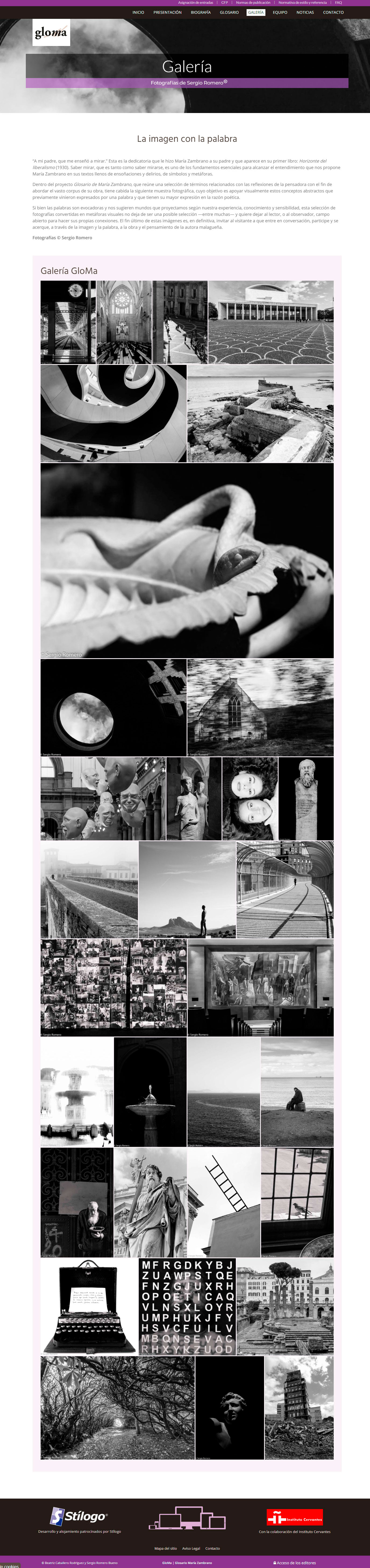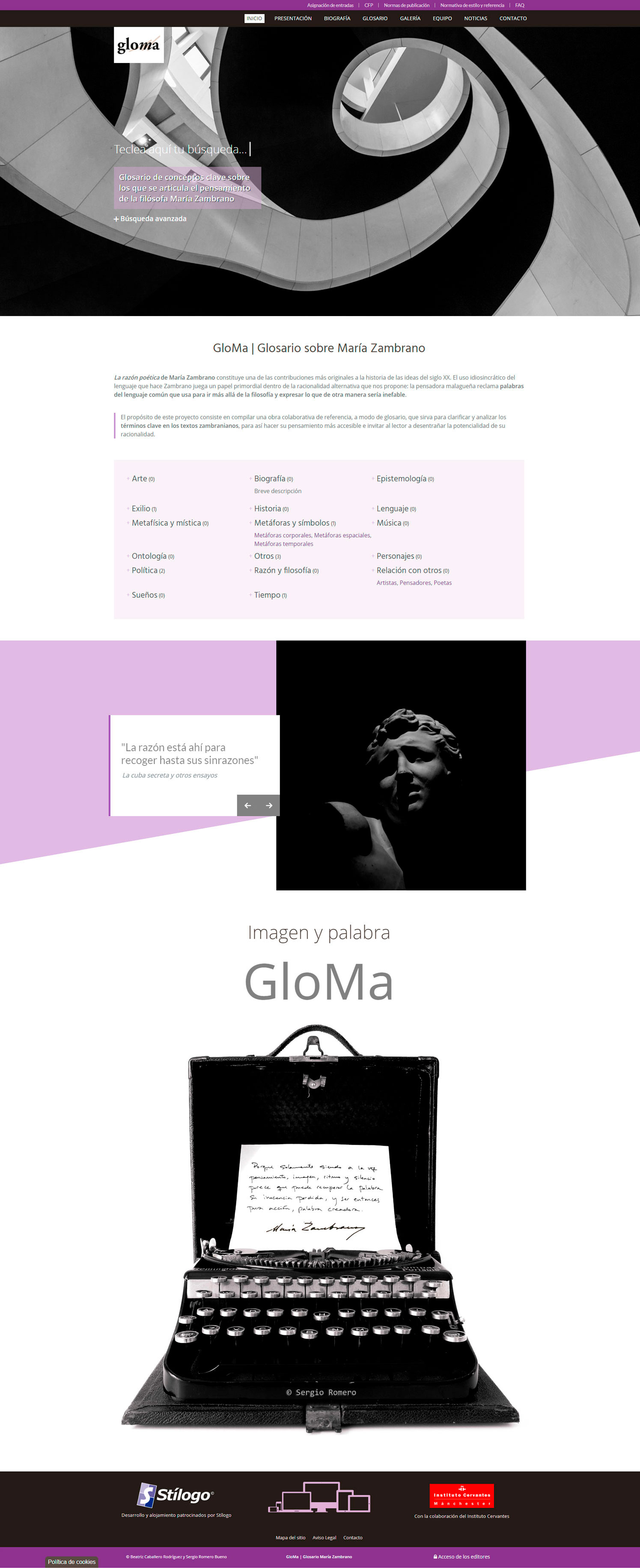 El glosario está dirigido por la doctora, y especialista en María Zambrano, Beatriz Caballero Rodríguez. Todas las fotografías son originales de Sergio Romero Bueno. Tanto Beatriz como Sergio están adscritos al Departamento de Español de la Universidad de Strathclyde. Stílogo participa en el proyecto como empresa desarrolladora y patrocinadora, en colaboración con el Instituto Cervantes.