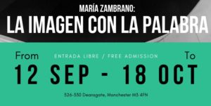Como suele ocurrir con los buenos proyectos multidisciplinares, el primer grupo de fotografías creadas para ilustrar una serie de conceptos culminó en una estupenda exposición sobre María Zambrano en el Instituto Cervantes de Manchester, en septiembre de 2019.
