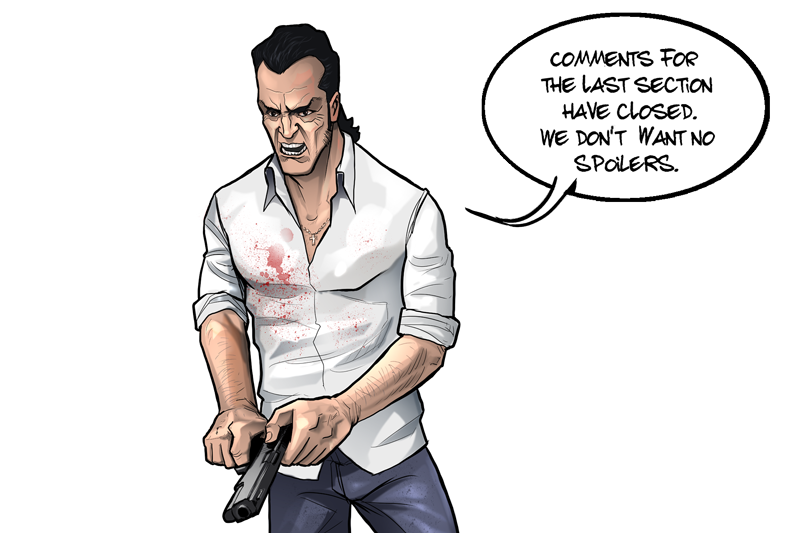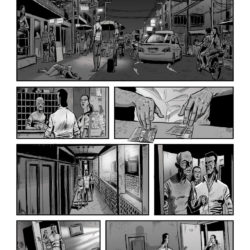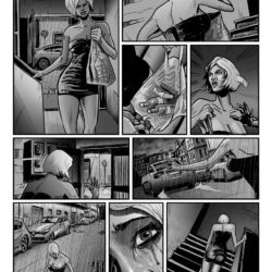 So I set about reading some comics and we got down to work. This detail, which may seem merely anecdotic, was essential for the project. As I have already mentioned, I am not a huge fan of graphic novels: I needed to write a story that would hook the reader, but we didn’t want to use superheroes, zombies, mass epidemics or other typical elements traditional in sci-fi comics. We both agreed that what was required was an approach more similar to a cyberpunk or film noir thriller, with a shocking opening scene (that I won’t reveal here) and an ending that would not be out of place in a classical tragedy. I had my work cut out for me.